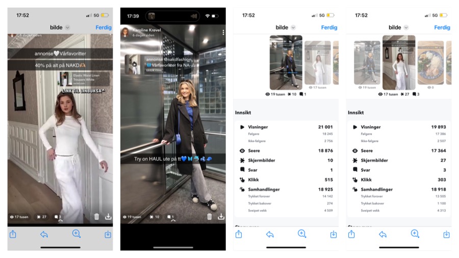 Karoline having a try-on-haul with spring products from NA-KD. On IG story all the products are linked to NA-KD website.